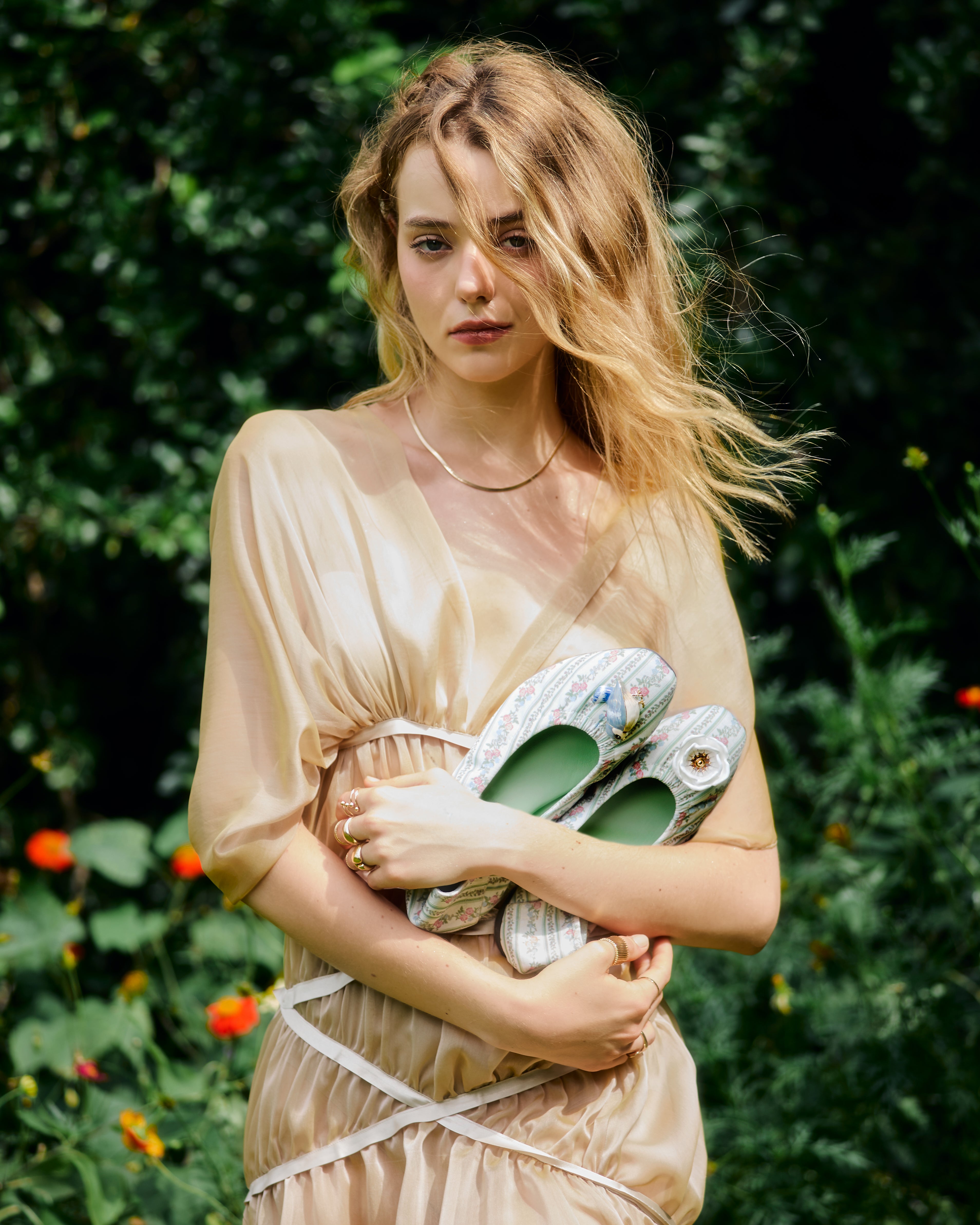 คอลเลกชัน Garden of Eden ดึงเสน่ห์ความ surreal กลับมาอีกครั้ง ผ่านแรงบันดาลใจจาก “สวนเอเดน” ถ่ายทอดความงดงามของธรรมชาติ โดยดึงเอา Element อย่างนกไนติงเกล ดอกคามิลเลีย และ ช่อมงกุฎดอกไม้รูปหัวใจ มารังสรรค์เป็นดีเทลบัลเบิลประดับรองเท้า ด้วยเทคนิคที่เลียนแบบงานเซรามิก และลงสีแบบ Hand-Painted ให้สีสันเสมือนจริง ผสานกับลวดลายผ้าที่นำเอา ดอกไม้และเถาวัลย์ ที่เลื้อยอยู่บนไม้ใหญ่ในสวน มาถ่ายทอดเป็นแพทเทิร์นสุดละมุน เสมือนภาพวาดบนวอลเปเปอร์สไตล์วินเทจ ให้ความรู้สึก หวาน ละมุน ราวกับกำลังจิบชาพักผ่อนอยู่ในสวนดอกไม้หลังบ้าน ณ ประเทศอังกฤษ